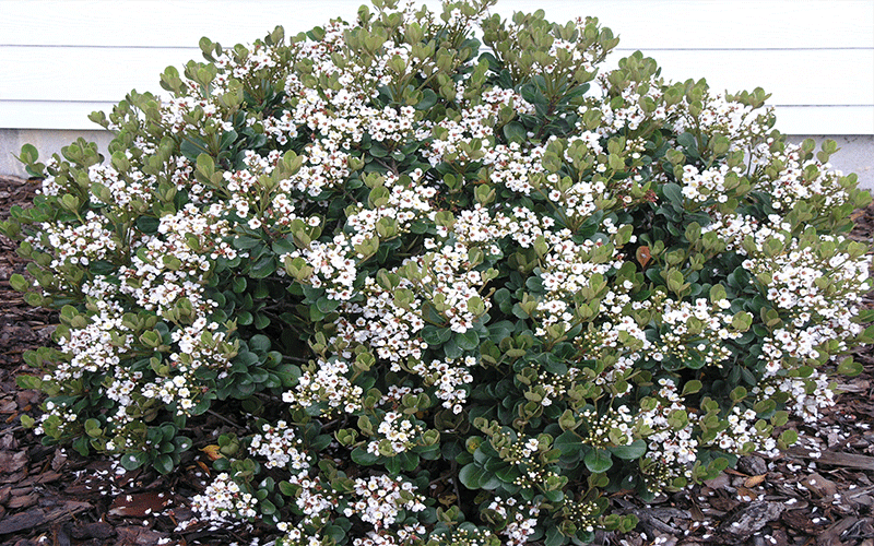 Plant Dwarf Indian Hawthorn's are low maintenance flowering evergreen shrubs that can be used in every landscape plans. The white flowers are produced in abundance during spring making them an excellent substitute for azaleas in full sun. These are exceptionally drought tolerant plants. The foliage is evergreen.