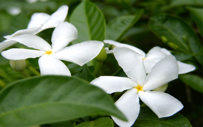 Pinwheel Jasmine is a fragrant semi tropical evergreen shrub that is native to tropical Asia. It is known by several other common names, including Crepe Jessamine, and Butterfly Jasmine or Gardenia. This plant is not a true jasmine, but is commonly called a jasmine because the flowers are jasmine like and have a similar, but lighter fragrance.