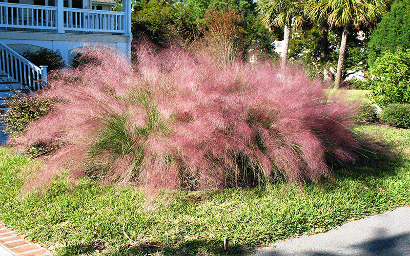 Muhly grass is naturally found in Florida's pine woods, coastal uplands and even along its highways, but these days it’s also a popular choice in home and commercial landscapes. It is a easy-to-grow ornamental grass produces clumps that can reach 2 to 3feet tall and up to 3 feet wide when mature.