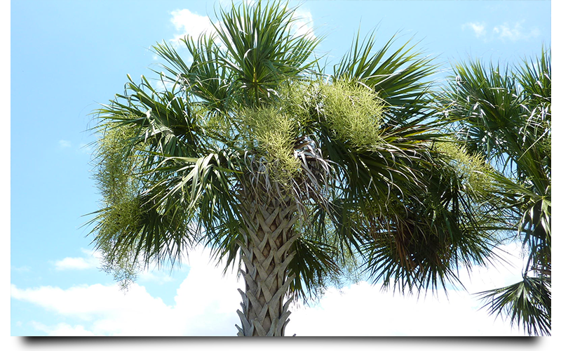 The Cabbage Palm has costapalmate type leaves, mix of palmate and pinnate, or mix of feather shaped and fan shaped leaves. Leaves have 50-80 leaflets that are about 1″ to 2″ wide. The Cabbage Palm is very durable and resistant to breaking with strong root system which penetrates the soil to 15-20 feet deep.