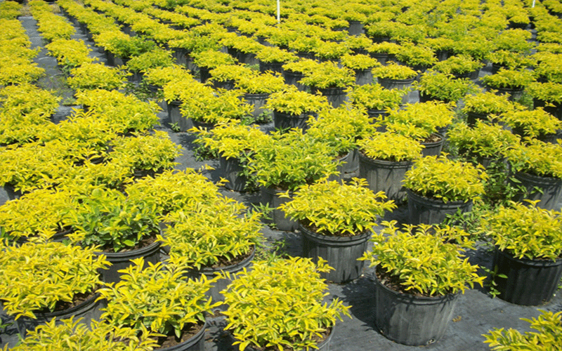 Gold mound grows 2 to 4 feet tall and wide. Its main attraction is its bright yellow foliage, although it does produce small lavender flowers as well. If you plant this shrub in the right location, it will require little attention after establishment. Select an area with full sun to partial shade and well-drained soil of almost any kind.
