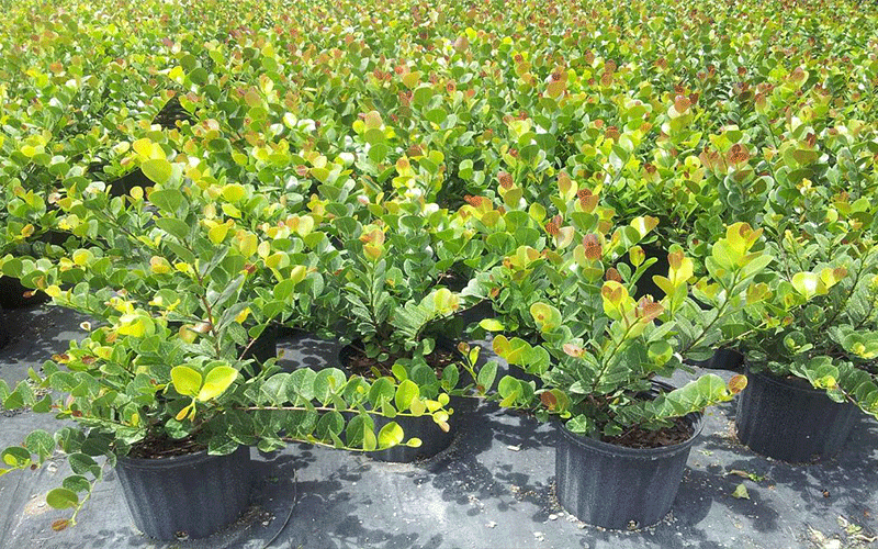 Terrific as hedge shrubs or privacy plants, these native Florida plants can grow to about 15 feet if you let them though most of the time they're kept trimmed to around 4 feet. This is an easy-care plant that can be kept more manicured for a formal look or left to grow in its naturally pretty rounded shape in a casual landscape style. There is a "horizontal" cultivar which can be grown as more of a groundcover shrub and is more salt tolerant than "Red Tip" coco plum.